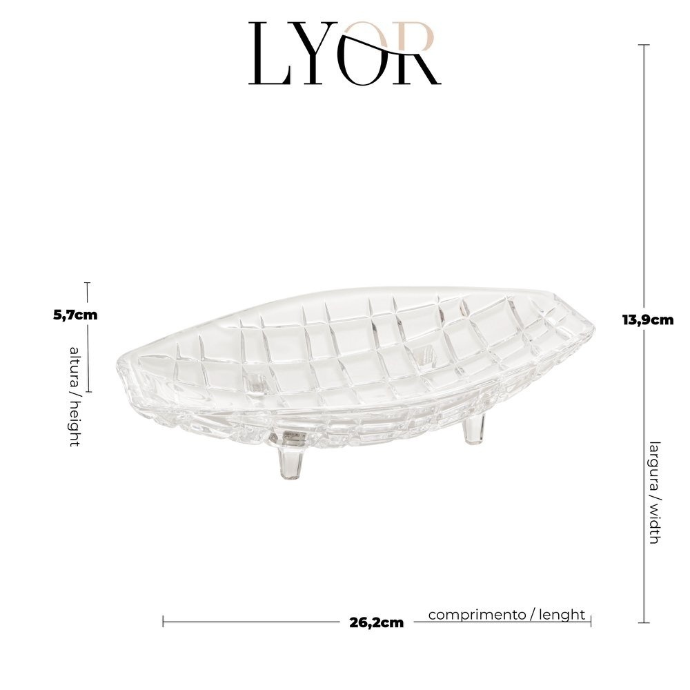 Centro de Mesa de Cristal Deli 26cm x 14cm x 5,5cm - Lyor O Centro de Mesa de Cristal Deli da Lyor é uma peça refinada que combina beleza e funcionalidade para decorar sua mesa com elegância. Feito de cristal transparente de alta qualidade, este centro de mesa possui dimensões generosas de 26cm de comprimento, 14cm de largura e 5,5cm de altura, proporcionando espaço suficiente para acomodar arranjos florais, velas decorativas ou outros objetos ornamentais. Seu design sofisticado e contemporâneo adiciona um toque de glamour a qualquer ambiente, seja na sala de jantar, na sala de estar ou em eventos especiais. Ideal para quem valoriza peças que unem estética e praticidade, o Centro de Mesa de Cristal Deli da Lyor é uma escolha elegante para complementar sua decoração. Características Gerais do Produto: • Cor: Transparente • Altura: 5,50cm • Largura: 14,00cm • Comprimento: 26,00cm • Orientações: Limpeza: Limpar com flanela branca e seca. Não utilizar produtos químicos. Contém: • 1 Centro de Mesa de Cristal Deli 26cm x 14cm x 5,5cm - Lyor